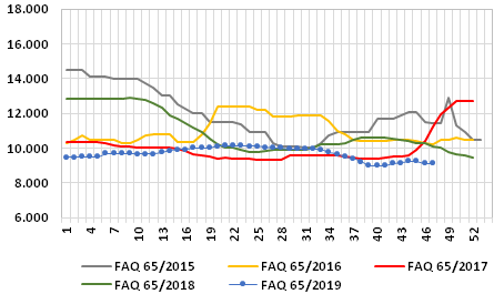 At the beginning of week 47, inventories registered 188,000 tonnes. Volumes leaving the warehouses amounted to almost 23,000 tonnes during the preious week.