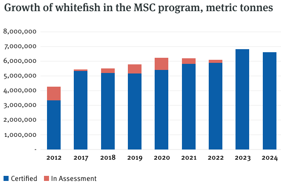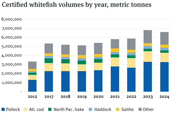 Over three-quarters of the world's whitefish is now certified as sustainable, a landmark achievement showcasing the long-term commitments of fisheries and the growing market for responsible seafood.