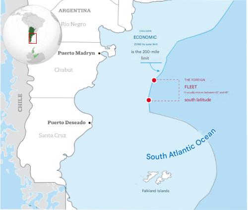 A large number of vessels are currently operating in the area, including several Galician boats, although most are Chinese squid jiggers, engaged in squid fishing.