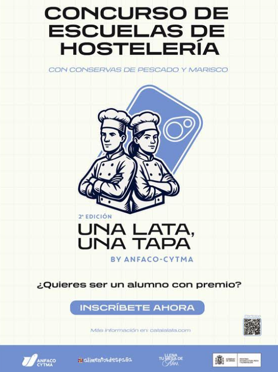 ANFACO-CYTMA pone en marcha una nueva edición del concurso gastronómico “Una lata, una tapa by ANFACO-CYTMA”, dirigido a escuelas de hostelería de toda España, con el objetivo de fomentar la creatividad y la técnica culinaria a través del uso de conservas de pescado y marisco en formato tapa.