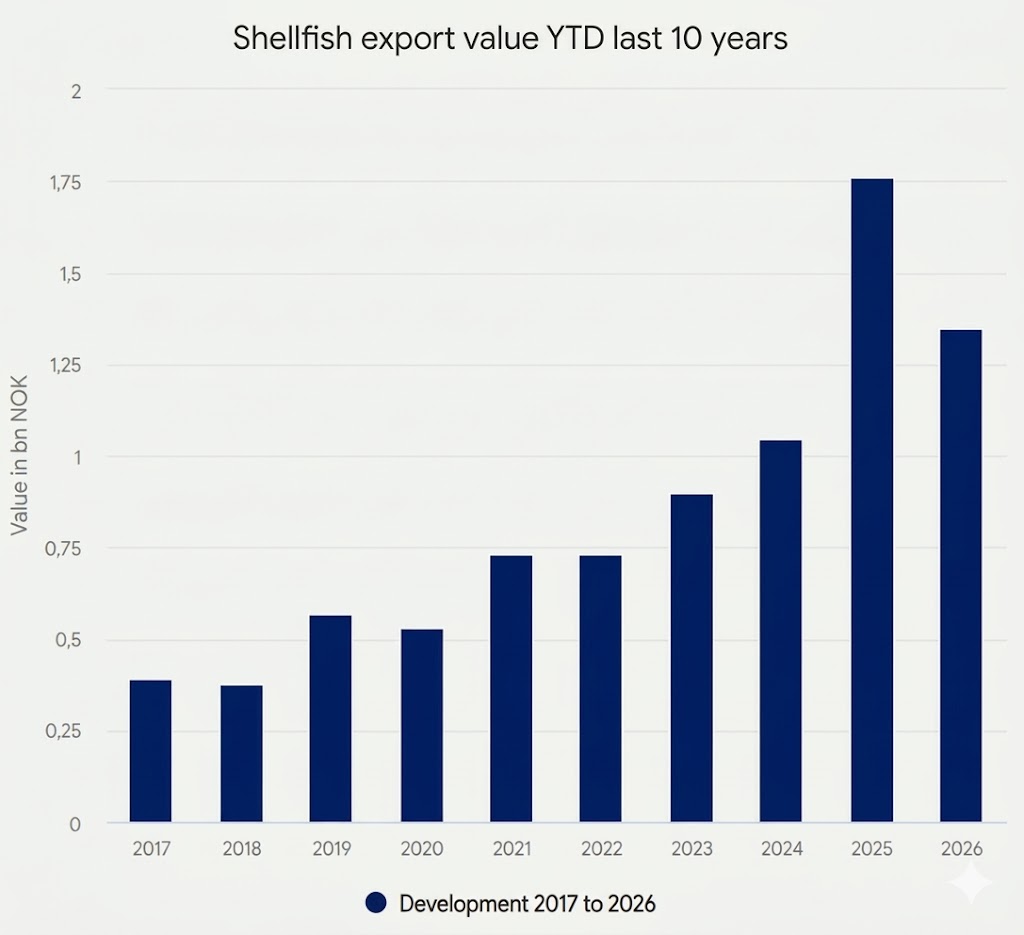 The latest data highlights a clear divide in Norway’s shellfish sector: while king crab struggles with supply limitations, snow crab and Prawn are benefiting from improved fishing conditions and stronger volumes.
