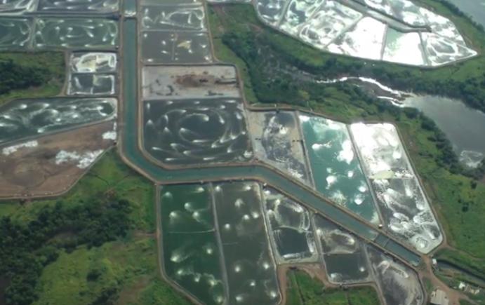 Vista aérea de las granjas de camarón vannamei. (Foto: YouTube)
