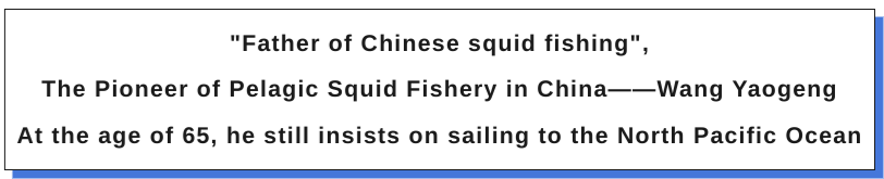 Subsequently, under his guidance, Chinese fishing boats made remarkable achievements in squid fishing operations. A Chinese squid fishing fleet that can operate in the Sea of Japan took shape, and marine fishing was revitalized. After several years of hard work, news of bumper catches and frequent high yields also came from the Pacific Ocean and quickly spread back to China, and the fishing industry was once again in a state of shock. At the age of 65, he still insists on going to the North Pacific Ocean, and participates in the front line of production on the arduous ocean squid fishing boat.
