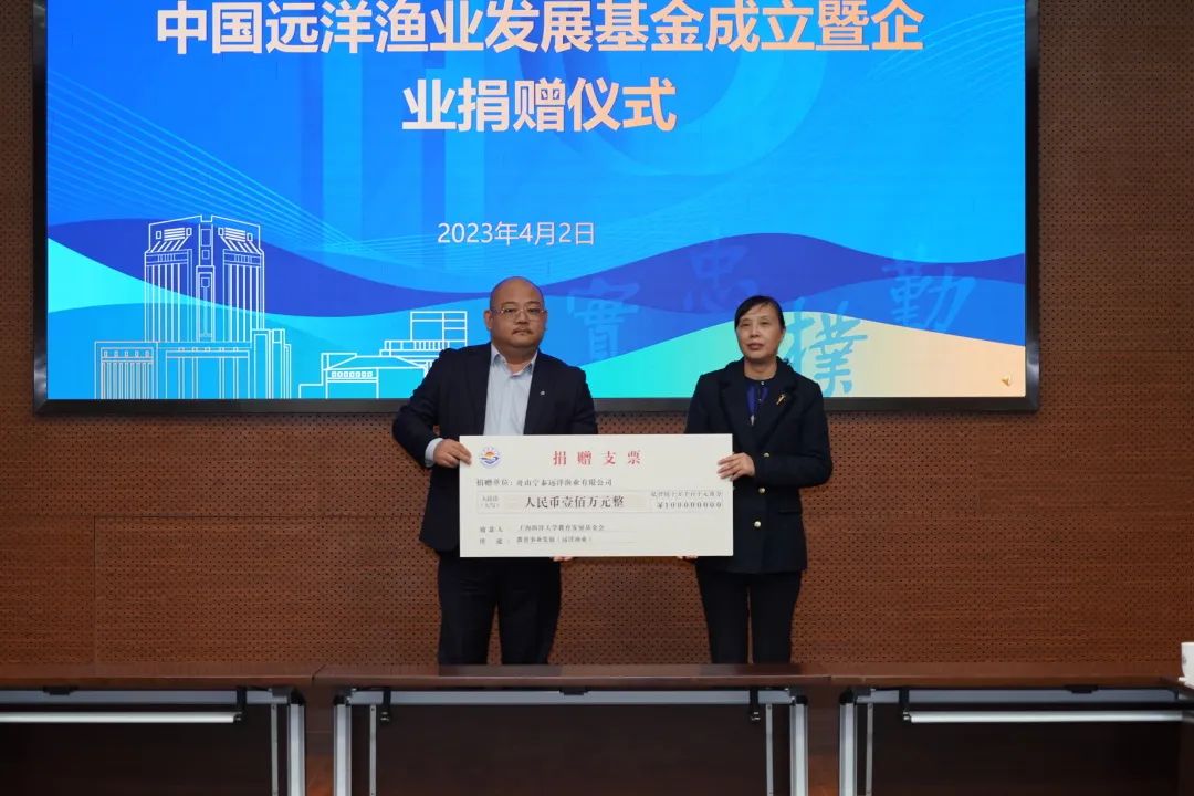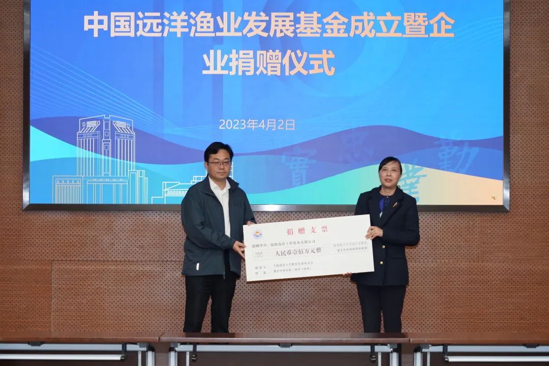 On April 2, with donations from Jiesheng Offshore Engineering Equipment Co., Ltd. and Zhoushan Ningtai Ocean Fishery Co., Ltd., the first ocean fishery development fund was established at Shanghai Ocean University.