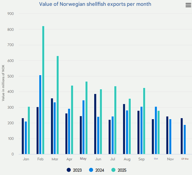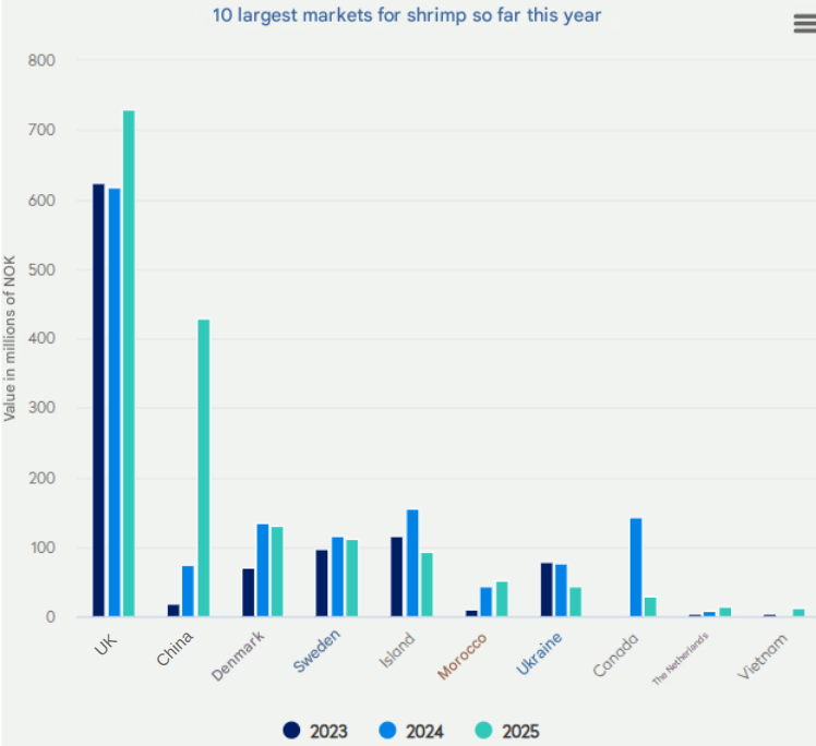 "Weaker landings from the shrimp fishery in the Barents Sea this year, compared to a strong shrimp fishery in 2024, are now having an impact on shrimp exports for October," Voraa notes.