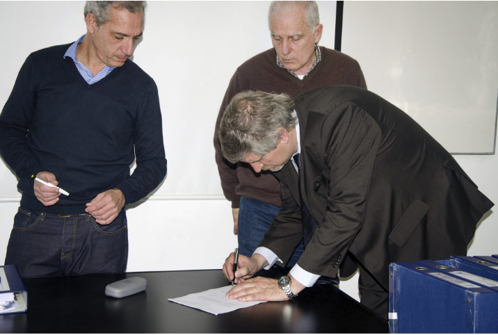 Apertura de sobres realizada en la sede del instituto con la presencia de su director, Otto Wöhler, y Ramón Basanta, en representación de la Subsecretaría de Pesca de la Nación. Foto: Pescare (2 de septiembre de 2015)