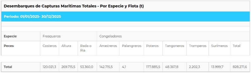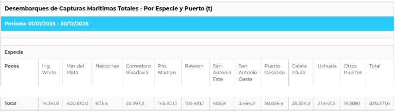 Argentina’s fishing catches reached 828,271 tons in 2025, consolidating a level of activity that remained virtually stable compared to the previous year, according to official data from the Secretariat of Agriculture, Livestock and Fisheries, under the Ministry of Economy of the Nation.