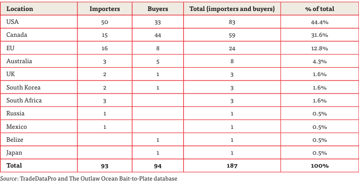 Según un reciente informe de la organización británica Environmental Justice Foundation (EJF), Estados Unidos es el principal comprador de calamar illex de Argentina proveniente de barcos que operan en la Milla 201 o FAO 41, la denominación de origen con la que ingresa a los mercados. Le siguen Canadá como segundo importador y España como el tercero, funcionando como puerta de entrada para el continente europeo.