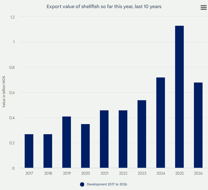 Overall, the data highlights a challenging month for Norway’s crab and prawn exports, with reduced shipments and lower export values affecting the sector across multiple key markets.