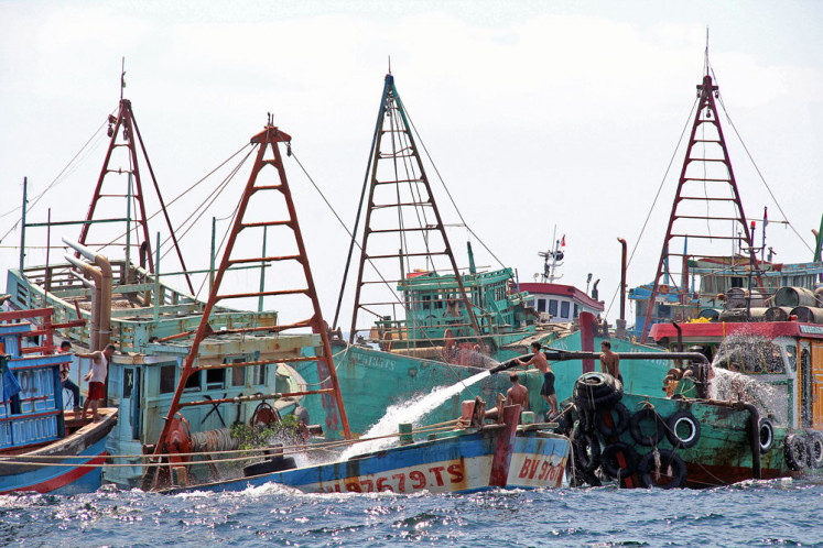 Foreign fishing boats whose holds are being filled with water to sink them