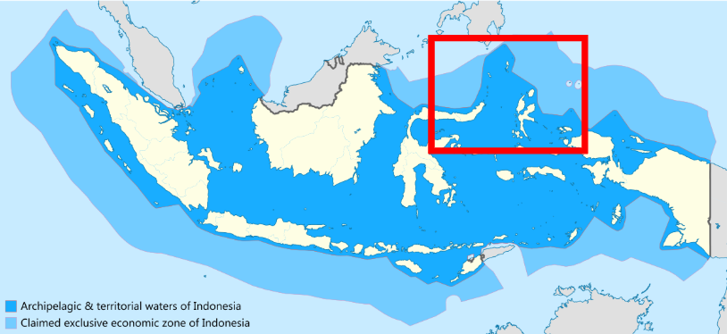 Exclusive economic zone of Indonesia and the critical area of Natuna y Sulawesi