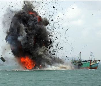 Buques Nacionales: Serán objeto de sanciones administrativas, que generalmente implican el pago de multas al estado. Estas sanciones se imponen por violar las regulaciones de la zona de pesca, como operar en la zona de 12 millas náuticas reservada para embarcaciones más pequeñas o pescar en el Mar de Natuna Norte con permisos válidos solo para el Mar de Java.