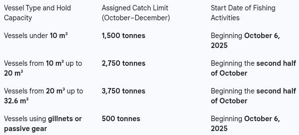 The overall maximum catch limit for bonito for the artisanal sector in 2025 has been set at approximately 87,000 tonnes, following IMARPE’s recommendations to ensure the biomass remains at healthy levels.
