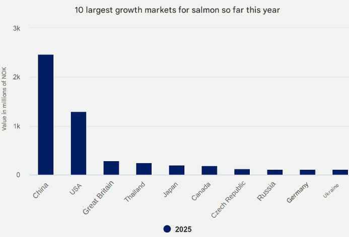 China Surges: China saw the largest value growth in September, with an increase in export value of NOK 352 million (approximately US$35.31 million), or an impressive 78 percent, compared to the same month last year. Export volume to China reached 8,147 tonnes, which is 68 percent higher than in the previous September.