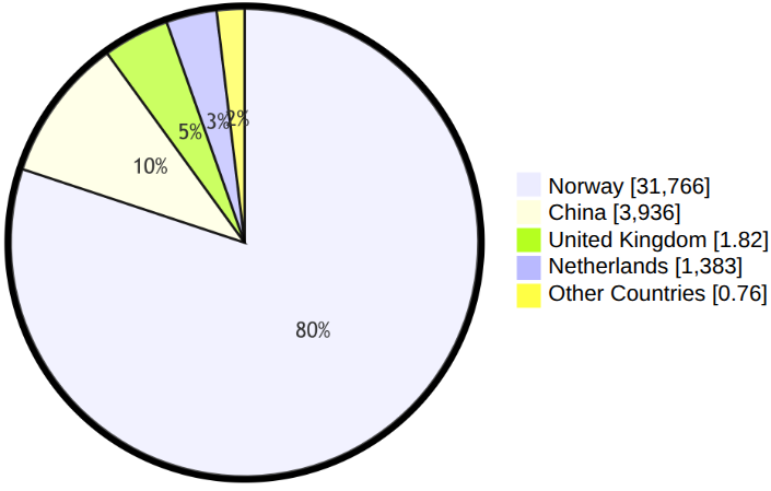 However, Norway’s overall share fell from 90.6% in 2024, indicating that imports are diversifying toward other origins such as China, the UK, and the Netherlands.