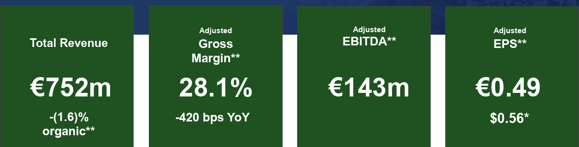 • Adjusted EPS decreased 10.9% to €0.49.