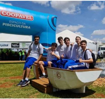 Con aproximadamente 2.000 metros cuadrados, el área de piscicultura —ubicada después del mirador del evento— recibe a productores integrados de Coopavel y a visitantes interesados en ingresar al sector. El espacio presenta el modelo de integración centrado en la Planta Procesadora de Pescado Fripeixe, reforzando el pescado como una alternativa rentable y sostenible dentro del agronegocio.