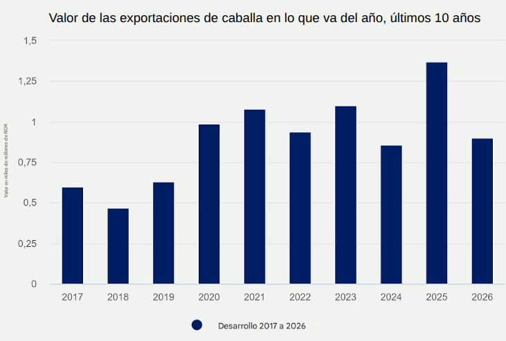 En 2025, Noruega estableció un récord en exportaciones de filetes de caballa, con 12.500 toneladas por un valor de NOK 800 million (alrededor de US$83.5 million).