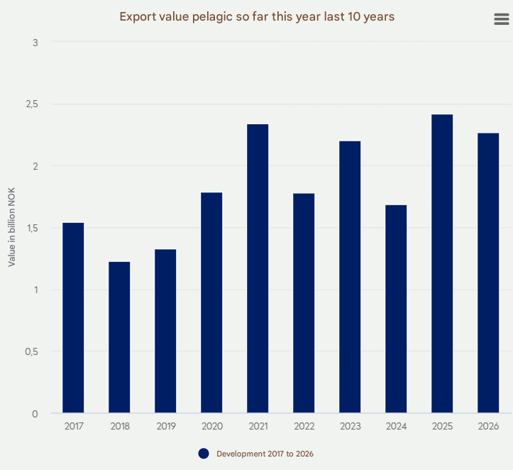 “Tenemos que remontarnos a 2012 para encontrar cifras similares, y esto también se refleja en las estadísticas de exportación", afirma Jan Eirik Johnsen, jefe de especies pelágicas del Norwegian Seafood Council.