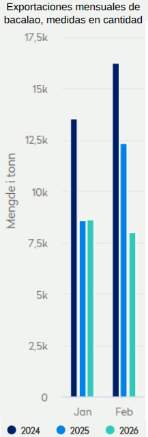 - Las exportaciones de skrei con etiqueta de calidad también disminuyeron en febrero.