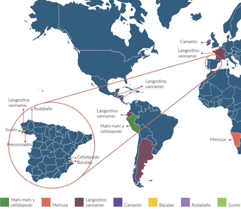 La firma española vende sus productos en 80 países y es también uno de los principales productores de camarón del mundo, mientras vende más de 70 productos del mar.