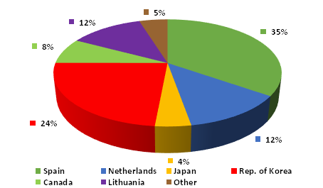 The 35% of these exports were sent to Spain, 2,276 tonnes, worth USD 6,088,000.