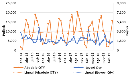Imports of other surimis (Pacific cod) were down 4%, 4,235 tonnes.