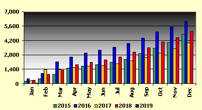 These figures are down 80% in volume and 86% in value on those registered in the previous month. Compared with January 2018, imports they are down 64% in volume and 71% in value.