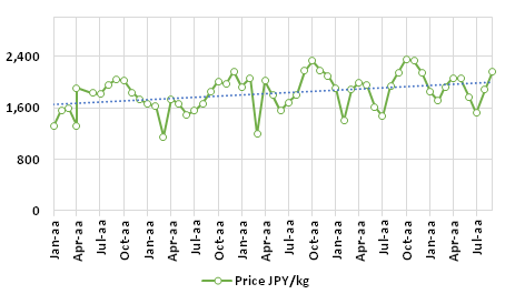 Table 1: Average price CIF at Japan Customs, in JPY/kg