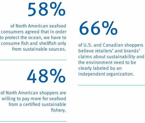 Recent research2 shows canned/pouched fish consumers are more concerned about the health of the oceans than the average seafood consumer. Eighty-seven percent of canned seafood consumers want better information so they can be confident they're not buying unsustainable fish or seafood products, and two thirds of canned seafood consumers are demanding independent labeling of environmental claims.