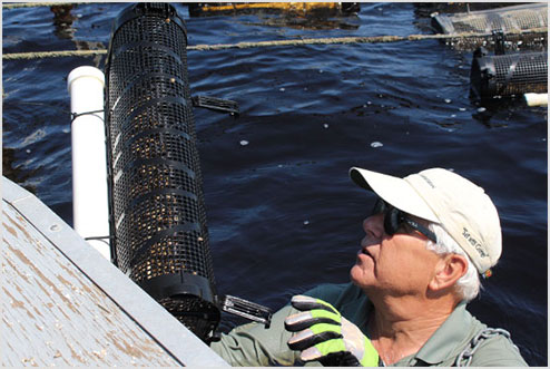 | Panacea Oysters are grown in their natural environment—the water of Spring Creek, Florida—in cages strung throughout the full water column. |