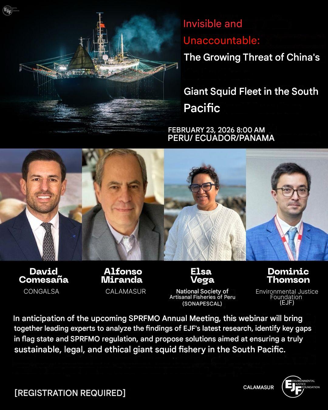 “One of the world’s most important squid fisheries is heading toward an ecological and social crisis as vast Chinese fishing fleets take advantage of weak governance, lack of transparency, and regulatory gaps throughout the Southeast Pacific.” Adding to this biological crisis, new research by the Environmental Justice Foundation (EJF) highlights labor abuses by one of the companies involved—China National Fisheries Corporation—whose catches are exported to the US, the European Union, and the UK.