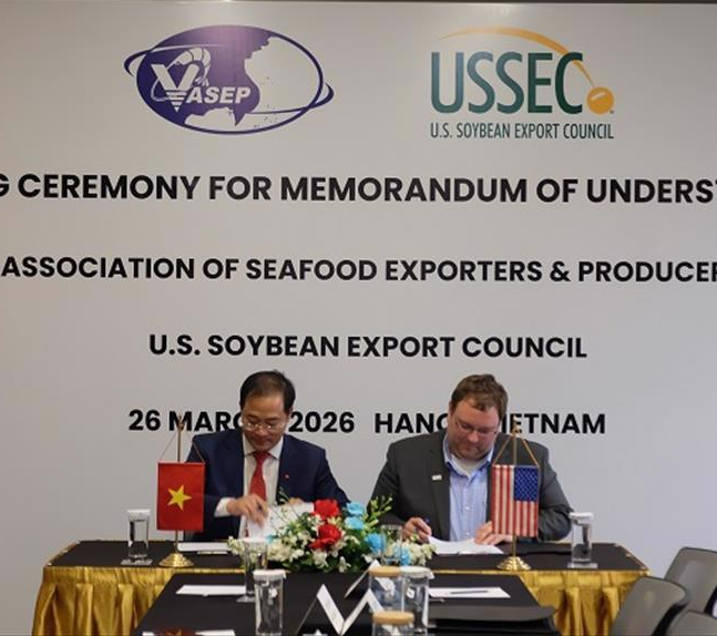 HANOI — La Vietnam Association of Seafood Processing and Export y el U.S. Soybean Export Council firmaron un Memorando de Entendimiento (MOU) para impulsar el desarrollo sostenible de la acuicultura y fortalecer la competitividad global de los productos pesqueros vietnamitas.