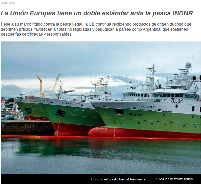 Todo tiene su límite y el disparador fue la nota firmada por una consultora, sin personería y con marca de fantasía “Resilience”, publicada en la Revista Puerto el pasado 5/12/2025 donde refiere a un “doble estándar ante la pesca INDNR” de la Unión Europea. Tema en el que coincidimos, porque días antes habíamos escrito (Perfil, 27/11/25), refiriéndonos a que Vigo es el principal puerto europeo de descarga de los productos pesqueros ilegales de especies argentinas. Ahora bien, que esta Consultora opine sobre el tema y, hable de “doble estándar” fue más allá de lo que uno puede tolerar.