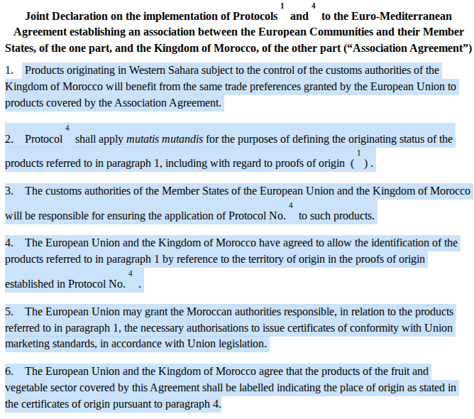 The European Union and the Kingdom of Morocco have reached an agreement to extend preferential tariff treatment to the territory of Western Sahara