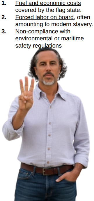 El especialista subraya que el viaje de 10,000 millas hasta los caladeros de pesca en otro hemisferio solo es viable gracias a lo que él denomina los "tres subsidios pesqueros perjudiciales":