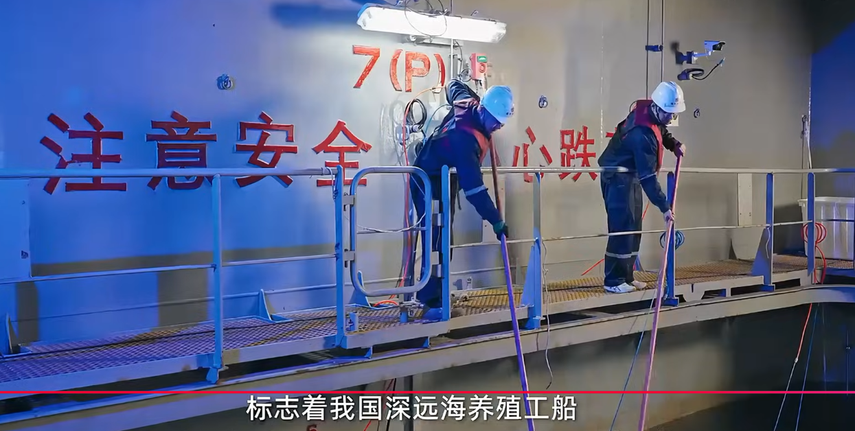 • Key operations, from stocking juvenile fish to feeding and harvesting, are performed by machines. The vessel has achieved a mechanization rate exceeding 90 percent, and automation levels are 45 percent higher than its predecessor.