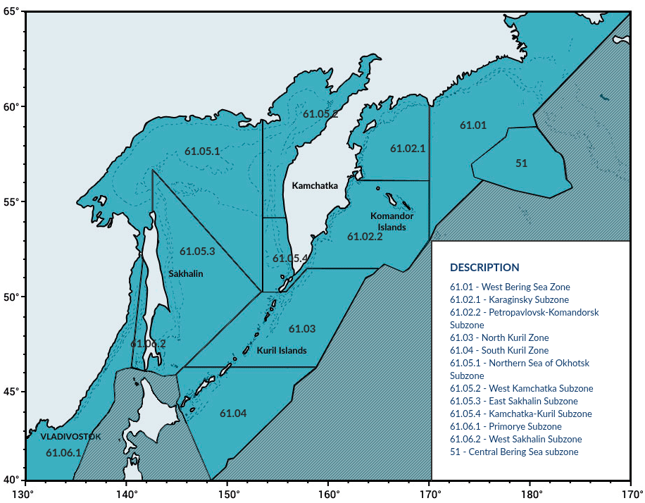 Mapa de las zonas de pescas de abadejo ruso. Haga clic sobre el mapa para ampliarlo