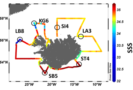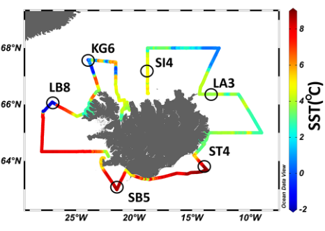 Selvogsbanki Station 5(SB5)(アイスランド南部)では、大西洋水の水温が8.55 °Cに達し、この地点での冬季観測史上最高値を記録しました。