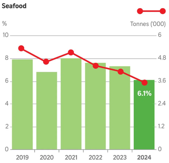 How Singapore's farming scene has fared over the years | Local production of seafood further declined in 2024 | Local production as a percentage of total consumption